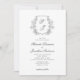 Una simple invitación a una boda blanca y negra presenta un escudo de arte botánico con su monograma. Personalice con todos los detalles importantes, como sus nombres, fecha de boda, hora y ubicación del lugar. El lado inverso está coordinado en negro