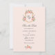 Elegante boda monorregramada Guardar la tarjeta de fecha con escudo acuarela con rosas románticos suaves y vegetación en un fondo rosa pálido.