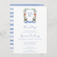 Esta adorable invitación de un niño rociado sería perfecta para su bebé rociado. Tiene un escudo azul monogramado de acuarela rodeado de vegetación y animales de la jungla, el primer nombre y el primer manojo de alegría, y una acuarela azul coordinada a rayas. Es único y precioso.