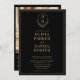 Esta invitación a las bodas en negro y oro es la combinación perfecta de lujo moderno y elegancia atemporal. El fondo negro profundo, combinado con detalles dorados brillantes, crea un estilo sofisticado y de alto contraste, ideal para bodas formales o nocturnos. El clásico diseño escudo le da un toque tradicional, mientras que la opción de incluir la foto la hace personal y memorable. El código QR integrado es una característica inteligente y moderna, perfecta para RSVPs rápidas, enlaces de registro o direcciones a su lugar de celebración. Imprimida con cartón premium, esta invitación se siente rica y pulida en persona. Es una excelente elección para bodas de corbata negra, eventos de lujo en el salón de baile o celebraciones glamurosas donde cada detalle brilla.