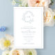 Invitación Escudo De Leafy Azul Polvo Moderno Monograma Boda