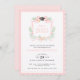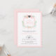 Este estilo de diseño de la invitación a la fiesta de graduación podría describirse como grandilocuente o coqueta. Cuenta con un escudo acuático con una cinta rosa claro con un tapón de graduación en la parte superior. Puedes personalizar el año de graduación dentro del escudo.