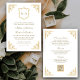 Invitación Escudo dorado Monograma Código QR Boda blanco