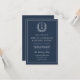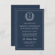 Invitación Escudo floral azul marino Monograma Boda Código QR