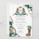 Diseño rústico elegante con un tema de charro/vaquero/rancho. Con un hermoso escudo, esmeralda de lujo verde y blanco floral y bonito cowgirl/cowboy botas