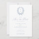 Escudo Vintage Elegant Leave Monograma Guardar la Invitación de Boda de Fecha. Invitación tradicional a la boda. Escudo Monograma Boda de hojas de oliva Guardar la tarjeta de fecha. Escudo botánico azul francés vintage Guardar la invitación de fecha