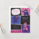 Invite a sus hijos a entrenar en la escuela Ninja con esta colorida invitación con paleta de colores azul, rosa, violeta y negro. Cuenta con 3 ninjas en diferentes poses. El diseño de la invitación se hace en un estilo similar al formato de los superhéroes retro con medio tono, arrebato de sol etc. Perfecto para los chicos y chicas de cumpleaños que aman el camino de los ninja!