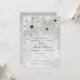 Elegante Invitación a la ducha de novias plateada verde esmeralda con copos de nieve.