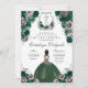 Invitación Esmeralda Verde y Plata Floral Elegante Quinceañer