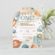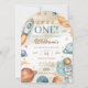 Invitación al primer cumpleaños del espacio. ¡Diviértete con esta invitación al primer cumpleaños del espacio! Perfecto para el primer viaje de su pequeño astronauta por el sol, este diseño editable cuenta con cohetes, planetas, estrellas y un fondo de galaxia. Personalice los detalles de su fiesta en minutos, ideal para celebrar su primer cumpleaños con temática espacial. ¡Envíe digitalmente o imprima en casa para una invitación fuera de este mundo!