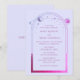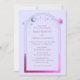 Mystical Celestial Pink Blue Purple Magenta Sun Star Moon Astronomy Space Wedding Invitaciones presenta sol, luna y estrellas con un marco rosa y púrpura sobre un fondo azul pálido. Adentro está tu información de invitación de boda personalizada. Personalice editando el texto en los cuadros de texto. Diseñado por ©Evco Studio www.zazzle.com/store/evcostudio