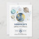 Celebra el hito especial de tu hijo con esta mágica invitación de cumpleaños temática en el espacio exterior. Con planetas imaginarios, luna y estrellas en la marina y en el color dorado.
