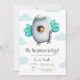 Invitación Espacios azul y blanco con Baby Shower de pájaro