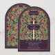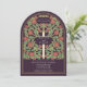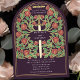 Establece el tono para tu boda de fantasía medieval con un diseño de invitación de arco audaz: una gran espada rodeada de flores y acentos dorados sobre un fondo de berenjena. Perfecto para parejas que sueñan con una celebración épica y romántica. ¡Haz que tu historia de amor sea legendaria desde la primera mirada! NOTA: el dorado que aparece en este diseño NO es lámina real.