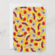 Diseño caprichoso de estilo retro con recuerdos de una fiesta española; guitarra de hierro forjado, ventilador de encaje y rosa roja. Un diseño de personalizable en blanco, negro, rojo y amarillo dorado para que puedas personalizar con tu propio texto, imágenes e ideas. Imagen original de arte digital.