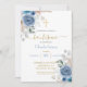 Invitación española al bautismo floral azul Invitación de bautizo en español con flores azules para niño