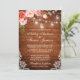 Rustic Wood String Luces Mason Jars Lace Coral Watercolor Floral Wedding Invitación