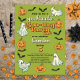 Planificar un cumpleaños de otoño para tu pequeño nunca ha sido más fácil. Nuestra invitación a la fiesta de Boo-Day es adorable, igual que tu pequeño monstruo. El frente está adornado con fantasmas, murciélagos y jack-o-linternas y la parte trasera tiene un patrón divertido y se puede dejar lisa o añadir una imagen. Ideal para la fiesta de cumpleaños de cualquier niño de otoño o Halloween.