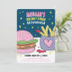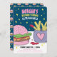 Presenta tu próxima festividad con nuestra emocionante fiesta de cumpleaños Burger y Fries! La decoración es encantadora, con una hamburguesa de queso pintada a la perfección con un bollo rosa, acompañada de una porción de papas fritas animadas e ilustradas que descansan en un recipiente morado adornado con un bonito corazón rosado. Un divertido chorro de kétchup, junto con una salpicadura de acentos brillantes sobre un fondo azul oscuro, infunden la carta con una atmósfera mágica de picnic nocturno. Además de su encanto, puede personalizarlo con los detalles de su fiesta. Invocando la alegría de una celebración en el patio trasero y una hermosa barbacoa, esta invitación promete un acontecimiento delicioso y memorable desde el comienzo.