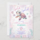 Sumérjase en la magia del cumpleaños con esta adorable invitación a la tortuga marina. Con ondulantes tonos pastel de rosa, lavanda y agua, detalles purpurinoso, este diseño crea un resplandor para cualquier niño obsesionado con el océano. Perfecto para fiestas temáticas de tortugas, celebraciones en la playa o cualquier tema acuático, esta invitación marca un tono mágico con sus acentos purpurinoso y su mundo submarino burbujeante.