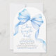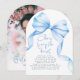 Dusty Blue Bow "She's Tying the Knot" Bridal Shower Photo Invitation Elegante, dulce y lleno de encanto — esta suave invitación a una ducha nupcial azul es la manera perfecta de honrar a la futura novia. Con un delicado arco acuarela y una forma moderna de arco, simboliza maravillosamente el momento en que está a punto de "atarse el nudo". La parte delantera muestra un guión elegante con detalles minimalistas, mientras que la parte trasera resalta su foto favorita y el título "Future Mrs." para un toque personal y elegante. Perfecto para una ducha de novia verde sabio o un fin de semana de soltera de moda, esta invitación marca la pauta para un día lleno de amor y alegría. Personalizar todos los colores de texto y fondo para hacerlo exclusivo suyo.