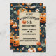 Invitación de cumpleaños infantil de Halloween de calabaza espeluznante con ilustraciones de calabazas naranjas espeluznantes y flores. Perfecta para invitación de cumpleaños infantil con tema de Halloween, primer cumpleaños, uno espeluznante, fiesta espeluznante, pequeño boo,