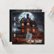 El frente de esta invitación a la fiesta de Halloween tiene una luna llena de plata iluminando una casa embrujada con brillantes ventanas amarillas. En la parte delantera de la casa hay una espeluznante imagen fantasma. El texto dice "VENGA si te ATREVES", con la información de tu fiesta en cinco campos de texto fáciles de personalizar y, por supuesto, una telaraña. ¡Qué cantidad de miedo y espeluznante!
