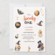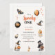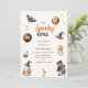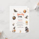 Esta tierna "espeluznante" invitación de cumpleaños de halloween incluye motivos de halloween que incluyen negro, murciélago, fantasmas, calabaza, caramelos, palo de halloween,