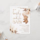 Invitación de Baby Shower Neutral Floral Bearly Wait for Baby Invitation Bohemian inspirado en la ducha de bebé en el tema de la espera de bebe con un oso lindo, globos, dos arreglos florales de color tierra con pasto pampas y una moderna caligrafía encabezada en una falsa textura de purpurina de oro rosa. Ideal para quien tenga un oso neutro de género con la temática de una ducha bohemia.