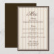 Invitación Espresso Cappuccino Striped Wedding Menu Card