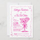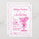 Esta invitación de cumpleaños temática espresso martini, caprichosa y femenina, cuenta con un gran martini de doodle rosado y un marco. Todo el texto es editable.