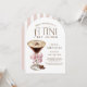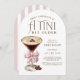 Una invitación de cumpleaños para una dama especial con un diseño sofisticado y juguetón en forma de arco. Cuenta con un elegante espresso de vidrio martini coronado con una capa espumosa y granos de café atados con una proa de chicha rosa. ¡Estos detalles se suman a la sensación de indulgencia y celebración! Personalice esta invitación de cumpleaños tan especial con los detalles de su evento. Esta invitación puede solicitarse en formatos digitales impresos y de descarga instantánea para su comodidad.