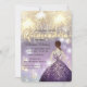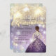 El oro de los fuegos artificiales modernos destellan chica en un diseño de vestido de pelota invitación a la invitación.