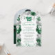 Esta elegante invitación de Quinceañera cuenta con un arco de globo purpurina brillante en varios tonos de verde y blanco con el globo número 15. Los tragaperras y los confetti en verde y blanco completan el ambiente fiesta. Atrás muestra tu foto favorita. Fácil de personalizar haciendo clic en "Personalizar".