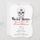 Invitación Despedida de Soltera Esqueleto Cráneo Huesos Rosa Rojo Negro