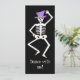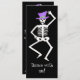 Empiecen a bailar con este esqueleto para una celebración de Halloween con esta invitación personalizable para un fiesta u otro evento. El frente de la invitación presenta un esqueleto caprichoso que está bailando una jig sobre un fondo negro con las palabras "Baile conmigo" en un tipo de letra honestamente honesto. Puede cambiar el tipo de letra a uno de sus opciones. La parte de atrás de la invitación es negra con un esqueleto bailando y "Estás invitado" para una plantilla para que puedas personalizar para tu evento de Halloween. El arte original pintado a mano muestra esqueletos bailando con un sombrero de la parte superior púrpura sobre sus cráneos y está en los colores negro, blanco y violeta. Consulta mis otros productos con este arte para ver productos en goulish para Halloween incluyendo tarjetas de felicitación, camisetas, posters, calcomanías, fundas de dispositivos electrónicos y más. Personalizable completo para la personalización. El arte original es de Phyllis Dobbs que te desea una Halloween feliz y honesta.
