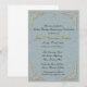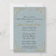 Elegante invitación con relieve, esquinas ornamentadas de oro y acento de corazones de oro en fondo azul moteado. Las invitaciones vienen completas con sobres blancos y elección de papel.