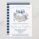 ¡Está atando el nudo! Esta encantadora y contemporánea invitación es perfecta para marcar el tono de tu evento de paleta de colores azul y blanco.