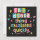 Tipografía retro divertida con letras coloridas y símbolos juguetones que muestran cómo un simple momento de baile se convierte en algo inesperado. Un comentario humorístico para cualquiera que ame bailar, situaciones divertidas y momentos espontáneos.