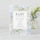 Con delicadas hojas de acuarela de bosque en un fondo de invierno con copos de nieve que caen. Esta invitación para una ducha de bebé o celebración de cumple de bebé todo en uno y neutral en cuanto al género se puede personalizar con el código QR de tu registro y detalles de la celebración especial en tipografía moderna. Diseñado por Thisisnotme©