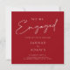Estamos comprometidos con la invitación a involucrarse en la prueba simple de fotos. Anuncie con elegancia su compromiso con sus amigos y familia con esta sencilla pero elegante invitación a la fiesta de compromiso "Estamos comprometidos", con un minimalista diseño de escritura blanca sobre un fondo rojo puro, con una foto personalizada de ustedes ambos en la parte trasera. Esta invitación al compromiso le da un toque moderno y minimalista, perfecto para cualquier boda simple y elegante. Esta invitación a un compromiso rojo y minimalista marcará la pauta para un marco boda sencillo y sobrio, rodeado de una decoración delicada y flores, y una decoración de boda rojo intenso a juego. Una adición perfecta a cualquier celebración de boda simple, mínima o elegante.