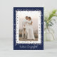 Esta moderna y única tarjeta de invitación a la fiesta de compromiso con la fotografía es perfecta para que la familia y los amigos sepan que están comprometidos e invitarlos al fiesta. Envíenlas a tus invitados con el guión de caligrafía blanca "We're Engaged" (Estamos comprometidos), tu foto rodeada de corazones purpurinas plateados sobre un fondo azul oscuro. Al contrario, toda la información de su fiesta. Easy DIY (hágalo usted mismo) editando el texto en los cuadros de texto del lado derecho de la pantalla. También disponible en formato postal.