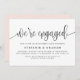 ¡Estamos comprometidos! Invite a la familia y amigos con esta elegante y sencilla invitación a la fiesta de compromiso. Presenta caligrafía caprichosa con tipografía clásica. Personalice agregando nombres, fecha, dirección y otros detalles. Esta invitación a participar en el guión es perfecta para cualquier temporada y tema de boda.