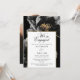 Esta elegante invitación floral en blanco y negro a la fiesta de compromiso 'estamos comprometidos' puede ser personalizada con su información en tipografía moderna y una foto especial al revés. Diseñado por Thisisnotme©