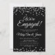 ¡Productos a juego disponibles! Elegante diseño de la fiesta de compromiso de boda con el moderno motivo negro de Confetti Purpurina de Faux Plata.