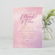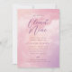 Una invitación de fiesta de bienvenida al bebé con un cielo pastel soñador con el tema "Nube 9". Este diseño presenta un fondo de cielo nublado pastel rosa y púrpura y el texto, "estamos en el noveno cielo". Todo el texto es personalizable.