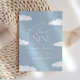 Invite a amigos y familiares a compartir la alegría de la llegada de su pequeña con esta polvorienta invitación a la ducha de bebé con temática azul "nube nueve".