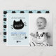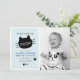 Esta tierna invitación a ver la foto del cumpleaños del chico "Me estás comiendo bien" muestra la cara de un gato negro, el hueso de pescado y el brillo en un fondo azul claro enmarcado por un borde blanco. El reverso presenta un fondo azul con patrones de gato negro y hueso de pescado. Personaliza tus necesidades.Puedes encontrar más productos a juego en mi tienda.