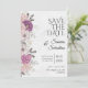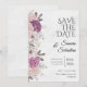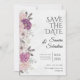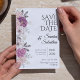 Anuncia tu boda con estilo con esta tarjeta estética de "Save The Date" que presenta delicadas flores de acuarela en tonos de púrpura y rosa suave. El fondo gris claro añade un toque moderno y elegante, creando una atmósfera romántica perfecta para parejas que aman la papelería de boda atemporal y contemporánea. Totalmente personalizable, esta invitación es ideal para compromisos, bodas o cualquier celebración elegante. Impresiona a tus invitados con un diseño chic y memorable que combina la elegancia estética y la sofisticación para tu día especial.