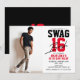 Esta invitación de cumpleaños número 16 al estilo universitario Swag es perfecta para cualquiera que busque agregar un toque de diversión y energía juvenil a su celebración. El diseño presenta colores audaces y llamativos y una fuente clásica de universidad que hará que cualquier destinatario se sienta parte del equipo. La invitación incluye todos los detalles necesarios, incluyendo la fecha, hora, ubicación e información de RSVP. Esta invitación seguramente establecerá el tono para una celebración memorable y emocionante de este cumpleaños importante. Si no estás celebrando un cumpleaños número 16, puedes alterar la edad en la invitación según lo prefieras.